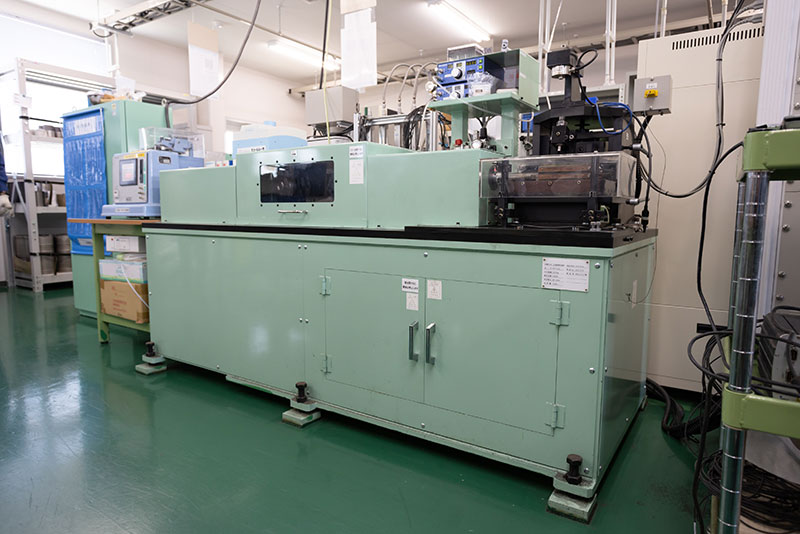 材料の疲労強度を評価する装置。主に平面曲げ疲労試験にて、材料評価を行っています。